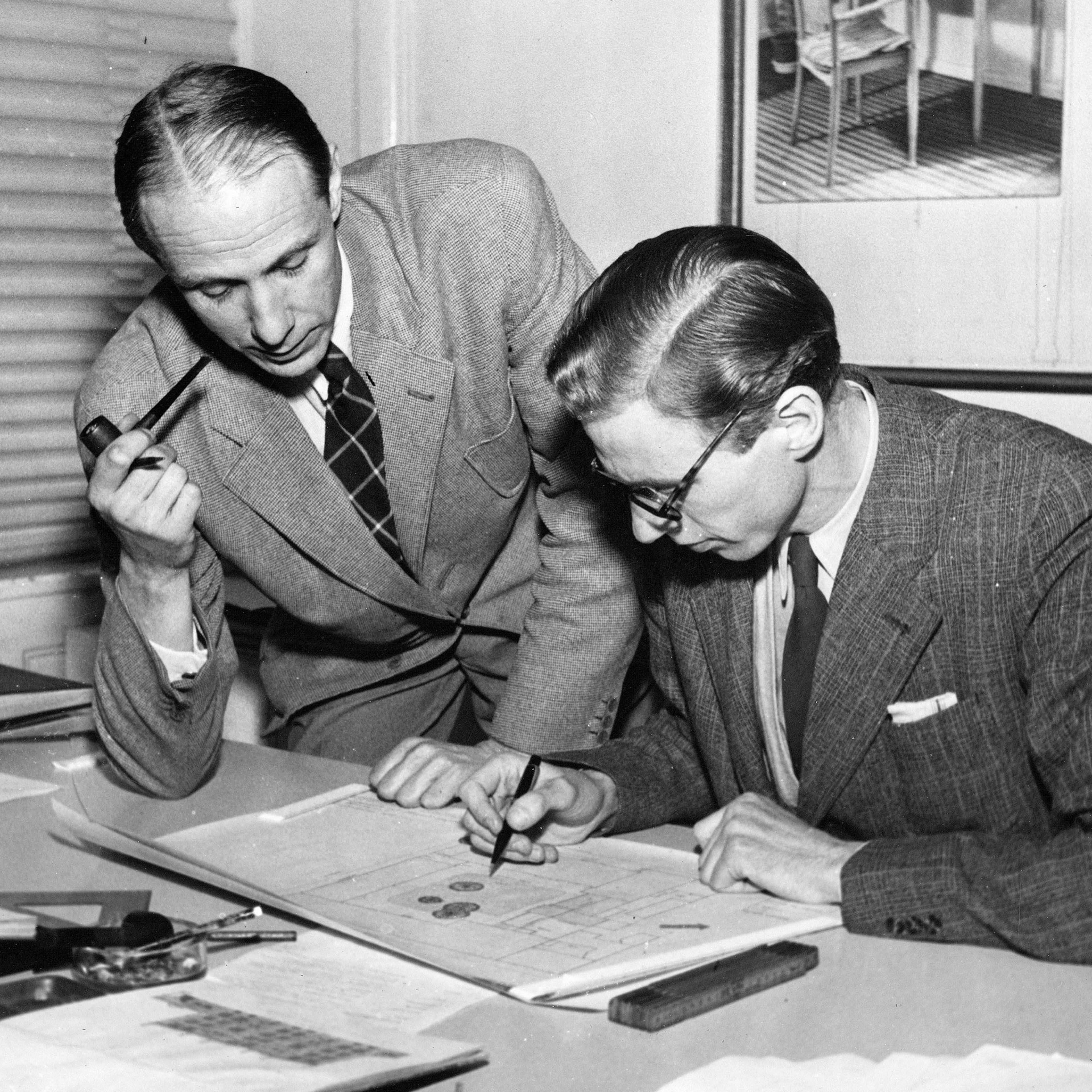 Peter Hvidt (1916–1986) and Orla Mølgaard-Nielsen (1907–1993) first connected at a woodworking school in Copenhagen, where a strong professional bond led to their joint practice. Their early success came in 1943 when they won a prominent Swedish design competition, marking the beginning of a celebrated partnership known for refined craftsmanship.